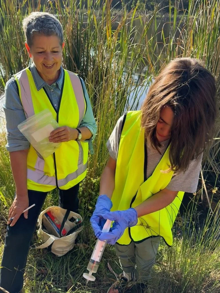 SDLG members taking water samples testing for platypus DNA for Melbourne Water, 2025.