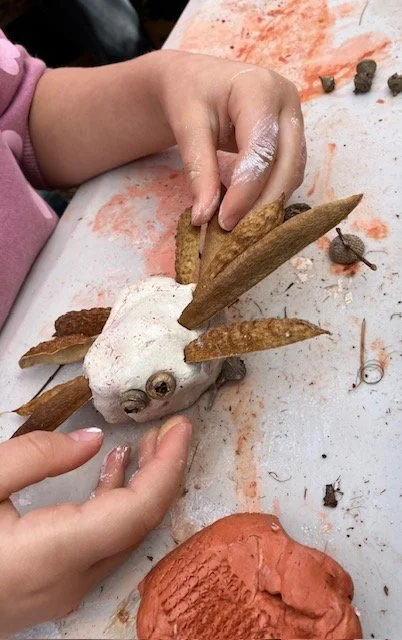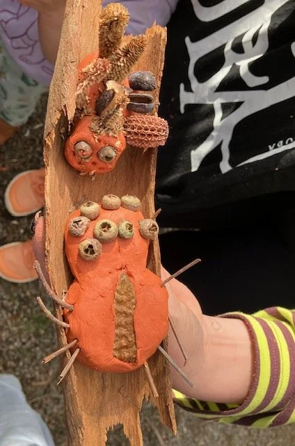 The kids greatly enjoyed our clay activity using natural materials such as seed pods, gum nuts and cones to create their own fantastic ‘mini beast’.